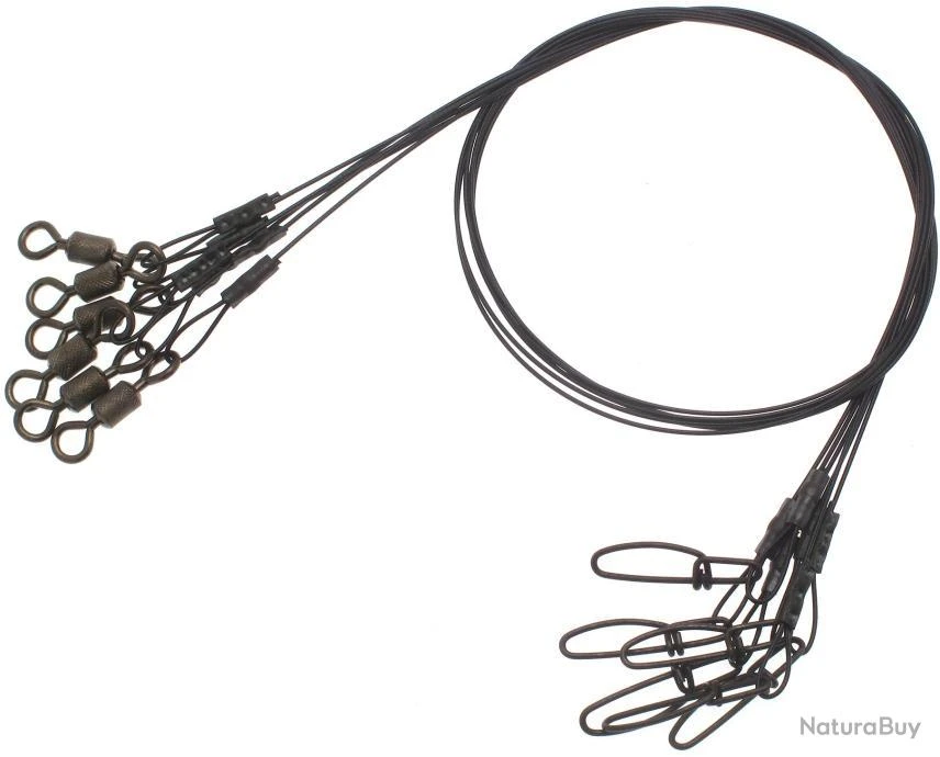 Bas de ligne en acier tressé (7 brins) et recouverts d’un revêtement en nylon noir, les Supa snap traces sont parfaits pour vous prémunir des dents coupantes des brochets et autres barracudas.Bas de ligne en acier tressé (7 brins) et recouverts d’un revêtement en nylon noir, les Supa snap traces sont parfaits pour vous prémunir des dents coupantes des brochets et autres barracudas.